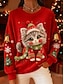 Damen Pullover Täglich Lässig Grafik Tiermotiv Jeder Gerippt Rundhalsausschnitt Gestrickt Druck Langarm Normale Oberteile Stricken Outdoor Wochenende Rote Grau Herbst Winter