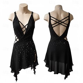 Eiskunstlaufkleid Damen Mädchen Eislaufen Kleid Schwarz Patchwork Asymmetrischer Saum Netzstoff Spandex Hohe Elastizität Training Wettbewerb Eiskunstlaufkleidung Klassisch Kristall / Strass Ärmellos