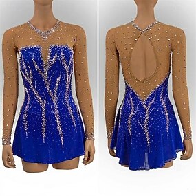 Eiskunstlaufkleid Damen Eislaufen Kleid Königsblau Patchwork Offener Rücken Dehnbar Training Wettbewerb Eiskunstlaufkleidung Klassisch Kristall / Strass Langarm Eislaufen Eiskundstlauf