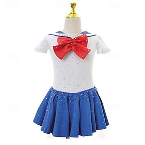 Eiskunstlaufkleid Mädchen Eislaufen Kleid Violett Rosa Himmelblau Patchwork Asymmetrischer Saum Dehnbar Training Wettbewerb Eiskunstlaufkleidung Klassisch Kristall / Strass Kurzarm Eislaufen