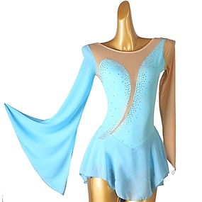 Eiskunstlaufkleid Damen Mädchen Eislaufen Kleider Austattungen Hellgelb Wasserblau Gelb Gitter Spandex Hochelastisch Ausbildung Wettbewerb Eiskunstlaufkleidung Patchwork Kristalle Langarm Eislaufen