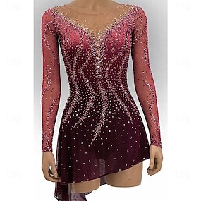 Eiskunstlaufkleid Damen Mädchen Eislaufen Kleid Purpur Daumenloch Halo-Färbung Hohe Elastizität Professionell Wettbewerb Eiskunstlaufkleidung Thermowarm Kristall / Strass Langarm Eislaufen