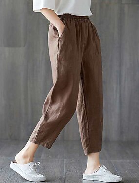 Damen Hose aus Baumwollleinen Chinos Sommerhose Lange Unterhosen Urlaub Streetwear Basic Knöchellang Mittlere Taillenlinie Einfach Tasche Elastischer Bund Komfort Unelastisch Outdoor Straße Violett