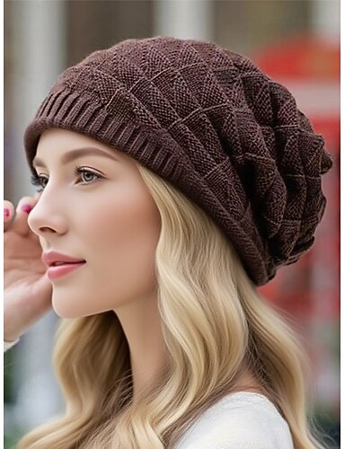 Damen-Strickmütze mit lässiger Passform – weiche, warme Wintermütze, lässige, dehnbare Totenkopfmütze für Outdoor-Reisen und den Alltag