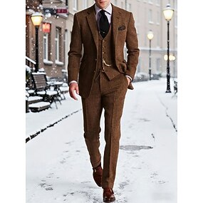 Herren Tweed Fischgrät Blazer Retro Vintage Jacke Winter Regular Übergröße Einreihig Zwei Knöpfe Braun Schwarz Blau