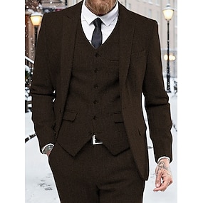 Herren Tweed Fischgrät Blazer Retro Vintage Jacke Winter Regular Übergröße Einreihig Zwei Knöpfe Braun Schwarz Blau