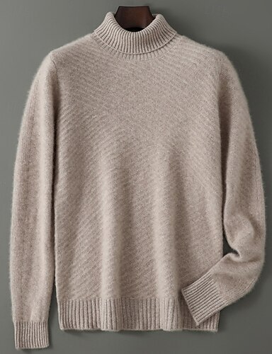 Herren Rollkragenpulli Pullover Wollpullover Kaschmir Kaschmirpullover Gerippt Stricken Cropped Strick Feste Farbe Rollkragen warm halten Moderne zeitgenössische Arbeit Freizeitskleidung Bekleidung