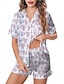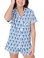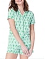 Damen Schlafanzug Set Lässig Komfort Grafik Cartoon Elastischer Bund Täglich Heim Kurzarm Revers Blau Rosa Purpur Grün Regenbogen Sommer Frühling Normale Passform