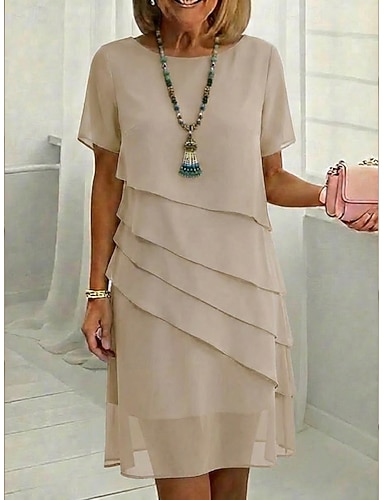 Damen Minikleid Freizeitkleid Chiffonkleid Stufenkleid Elegant Mode Modern Outdoor Urlaub Ausgehen Lässiger Schnitt Einfach Halbarm Rundhalsausschnitt Rosa Rote Khaki Sommer Frühling