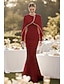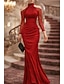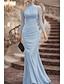 Meerjungfrauenschnitt Bodenlang Abendkleid Elegant Abendkleid mit Empire-Taille Langarm Hoher Ausschnitt Abendgesellschaft Hochzeit Stretch Satin mit Falten Einfarbig