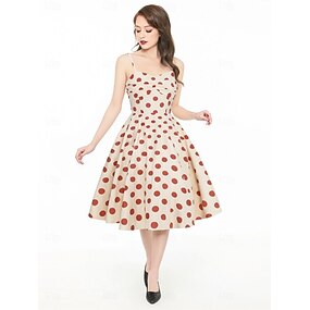 Retro Vintage 1950er Hepburn Knielang Kleid Swing-Kleid Ausgestelltes Kleid Spaghetti-Träger Tupfen Kariert / Gingham A-Linie Kostüm Damen Karneval Urlaub Alltagskleidung Junggesellinnenabschiedsparty