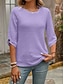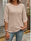Damen Waffelhemd Bluse Knöpfe Einfarbig Stilvoll Lässig Dreiviertelarm Rundhalsausschnitt Normale Oberteile Täglich Blau Purpur Orange Khaki Frühling Herbst