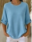 Damen Bluse Hemd aus Leinenimitat Knöpfe Einfarbig Täglich Lässig Dreiviertelarm V Ausschnitt Normale Oberteile Täglich Schwarz Weiß Rote Orange Grün Sommer Frühling Herbst