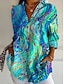 Damen Hawaiian Hemden Fließende Tops Vintage Lässig Grafik Geometrisch Lange Tops Langarm Hemd Kragen Patchwork Knöpfe Druck Form Fit Urlaub Arbeit Täglich Hellblau Sommer Urlaub Bekleidung