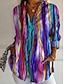 Damen T-Shirt V-Ausschnitt Ombre Floral Grafik Elegant 3/4 Länge Ärmel Regelmäßige Tops Alltag Ausgeh Knöpfe Grasgrün Schwarz und grau Blau Lila Grün Sommer Frühling Herbst