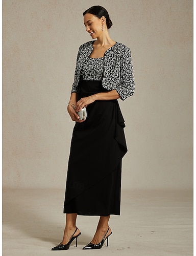 Damen Jackenkleid Etuikleid Maxikleid elegant formell halbformell Abendparty normale Passform Blumenmuster Langarm Rundhalsausschnitt schwarz Frühling Herbst Winter