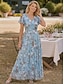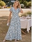 Damen Midikleid Cocktailkleid Chiffonkleid Blumenkleid Druckkleid Mode Modern Outdoor Urlaub Teegesellschaft Normale Passform Blume Kurzarm V Ausschnitt Blau Grün Leicht Blau Sommer