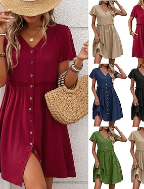 Damen Minikleid A Linie Kleid Sommerkleid Lässig Täglich Normale Passform Einfach Kurzarm V Ausschnitt Schwarz Wein Marineblau Grün Sommer Frühling
