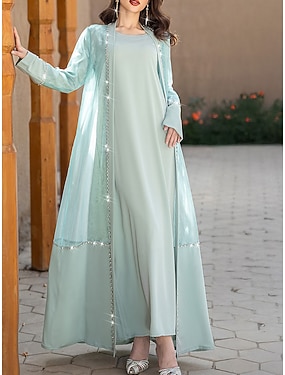 Damen Maxikleid A Linie Kleid Elegant Abendgesellschaft Schnürung Pailletten Normale Passform Blumen Kurzarm Rundhalsausschnitt Salbeigrün