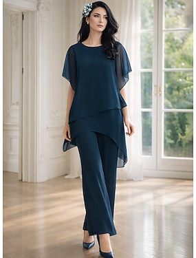 Hosenanzug Asymmetrisch Brautmutterkleid Kurzarm Hemdkragen Elegant Formell Hochzeitsgast Formeller Abend Chiffon mit Einfarbig