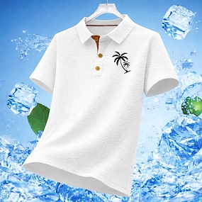 Herren Waffel-Poloshirts Textur Lässig Arbeit Revers Kurzarm Basic Modern Kokospalme Knöpfe Kühlung Sommer Frühling Blau Schwarz Weiß Marineblau Dunkelgrau Leicht Blau Waffel-Poloshirts