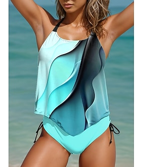 Damen Tankini 2-teiliges Badeanzug Boho Cheeky Rückenfrei Urlaub Strandbekleidung Ombre Rundhalsausschnitt Ärmellose Badeanzüge