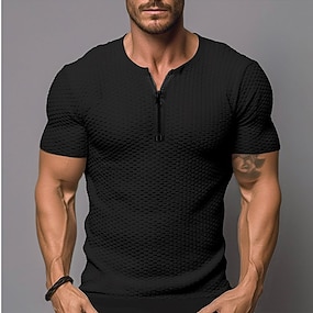 Herren Waffel-T-Shirt T-Shirt Kurze Ärmel Viertelreißverschluss Sommer Einfach Mode Designer Basic Reißverschluss Urlaub Straße Ausgehen Schwarz Weiß Marineblau Top T-Shirt für Herren