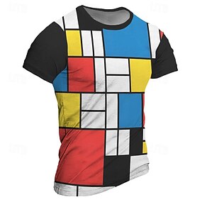 Herren Grafik Farbblock T Shirt Kurzarm T-Shirt 3D-Druck Rundhalsausschnitt Hemd Täglich Lässig Streetstyle Sport im Freien Ferien Ausgehen Rote Blau Himmelblau Frühling & Sommer Bekleidung S M L XL