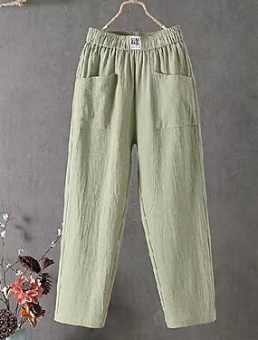 Damen Übergröße Sommerhose 100% Baumwolle Einfach Lässig Komfort Knöchellang Natürliche Taille Einfarbig Mikroelastisch Heim Straße Blau Weiß Grün Khaki Sommer Frühling