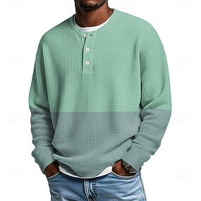 Herren Geometrisch Farbblock Farbverlauf Waffel-Henley-Hemd Lässiger Stil Klassicher Stil Langarm Mode Designer Basic Täglich Outdoor Frühling & Herbst Blau Olivbraun Henley Henley T-Shirt