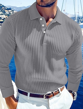 Herren Rippenstrick-Top Textur Straße Lässig Revers Langarm Basic Modern Einfach Knöpfe Frühling Herbst Ganzjahres Normale Passform Weiß Blau Marineblau Grau Rippenstrick-Top