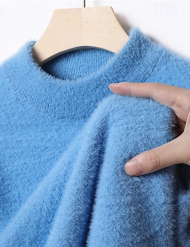 Herren Pullover Kleid Pullover Strickpullover Gerippt Zopfmuster Stricken Abgeschnitten Gestrickt Rundhalsausschnitt Moderne zeitgenössische Alltagskleidung Ausgehen Bekleidung Herbst Winter Blau