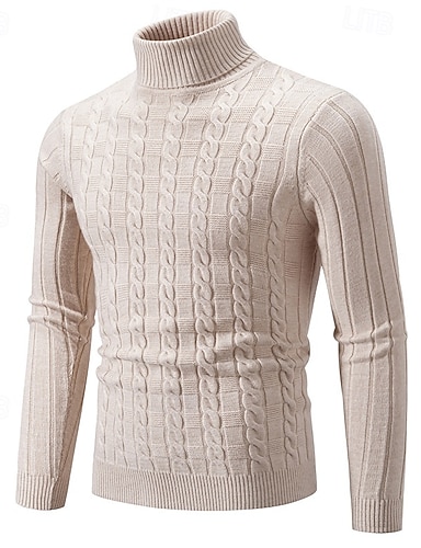 Herren Pullover Strickpullover Gerippt Zopfmuster Stricken Normale Oberteile Gestrickt Einfach Rollkragen Mode Lässig Urlaub Alltagskleidung Bekleidung Herbst Winter Schwarz Weiß M L XL