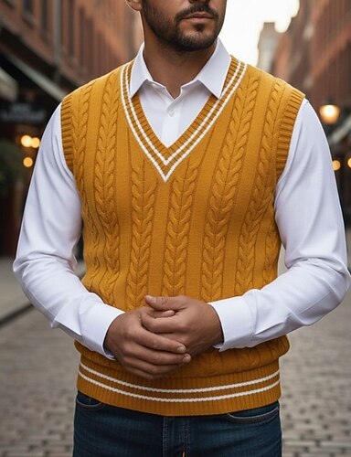 Herren Pullunder Kleid Pullover Pullover Weste Strickpullover Gerippt Zopfmuster Stricken Normale Oberteile Gestrickt Einfach V Ausschnitt Mode Lässig Urlaub Alltagskleidung Bekleidung Herbst Winter