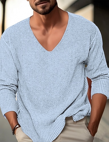 Herren Pullover Strickpullover Gerippt Stricken Normale Oberteile Gestrickt Einfach V Ausschnitt Mode Basic Urlaub Alltagskleidung Bekleidung Herbst Winter Schwarz Weiß S M L