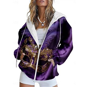 Karneval Damen Zip-Up Hoodie Grafik Geometrisch Abstrakt Mode Streetwear Lässig Langarm Kapuze Reguläre Oberteile Lässig Alltag Ausgeh Zip-Up Tasche Lila Grün Dunkellila Frühling Herbst