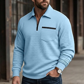 Herren Waffel-Poloshirts Textur Lässig Sport & Outdoor Viertelreißverschluss Langarm Mode Bequem Reißverschluss Tasche Herbst Frühling & Herbst Ganzjahresmode Bequeme Passform Weiß Marineblau Purpur