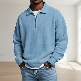 Herren Waffel-Poloshirts Textur Lässig Outdoor Viertelreißverschluss Langarm Mode Modern Einfarbig Texture Gestrickt Frühling & Herbst Ganzjahres Lässiger Schnitt Schwarz Marineblau Dunkelgrün Purpur