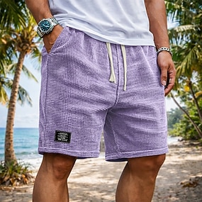 Herren Waffel-Shorts Shorts Sommershorts Strandshorts Freizeitshorts Kordelzug Elastischer Bund Einfarbig Einfach Komfort Atmungsaktiv Knielang Täglich Outdoor Streetwear Urlaub Mode Schwarz Weiß