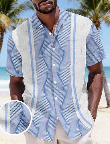 Herren Geometrisch Wellen Knopfhemd Crinkle-Shirt Seersucker-Shirt Kurzarm Modisch lässig Täglich Strandurlaub Sommer Frühling Umlegekragen 3D-Druck Hemd mit Blasenstruktur Weich Blau Gelb Purpur Grün