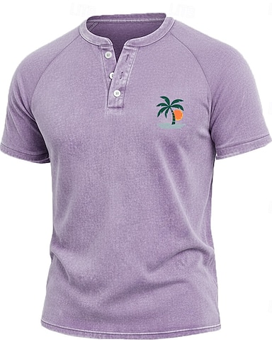 Herren Vintage Gewaschen Baumwollhemd Henley Oberteil Acid-Wash-Shirt Kurzarm Aktiv Vintage Designer Lässig Täglich Outdoor Frühling & Sommer Sommer Frühling Hellblau Violett Grau Henley Henley