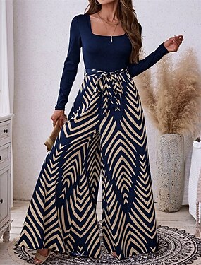 Damen Freizeitkleidung Onesie Mode Sexy Lässig Grafik Einfarbig Schnürung Rückenfrei Hose Urlaub Heim Straße Langarm U-Ausschnitt Königsblau Sommer Frühling Figurbetonter Schnitt