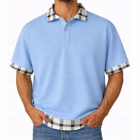 Herren Bowlinghemd Poloshirts Lässig Ferien Umlegekragen Kurzarm Basic Modern Farbblock Kariert Farbblock Knöpfe Sommer Frühling Blau Schwarz Weiß Purpur Bowlinghemd