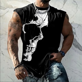 Herren-T-Shirt mit abstraktem Totenkopf-Motiv im Used-Look, Grunge-Stil, ärmellos, Tanktop, Rundhalsausschnitt, figurbetont, für Fitnessstudio, Sommer, Freizeit, Designer-Kleidung, Größen: S, M, L,