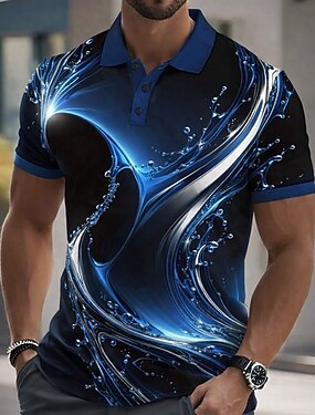 Herren Geometrisch Linie Polo Kurzarm Polo-Shirts Hemden mit Kragen Business-Casual Outdoor Athleisure Alltagskleidung 3D-Druck Knöpfe Sommer Blau Schwarz 1 Schwarz