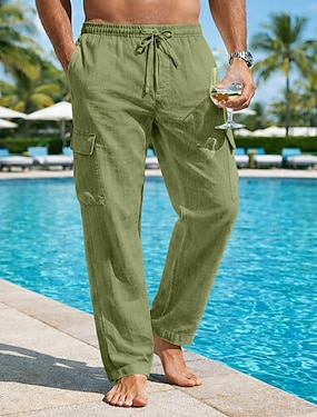 Herren Cargohose Cargohosen Jogginghose Jogger Leinenhose Hose Hosen Sommerhosen Kordelzug Elastische Taille Multi Pocket Glatt Komfort Atmungsaktiv Casual Täglich Festtage Modisch Klassicher Stil