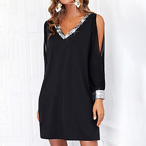 Damen Minikleid schwarzes kleid Partykleid Cocktailkleid Abendkleid Mode Modern Abendgesellschaft Party Cocktailparty Normale Passform Tupfen Langarm V Ausschnitt Schwarz Herbst Winter