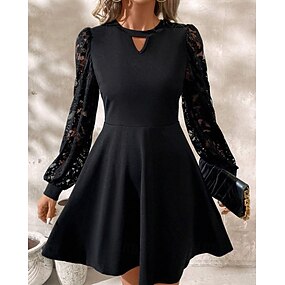 Damen Minikleid schwarzes kleid Spitzenkleid Elegant Modern Laternenärmel Outdoor Geburtstag Cocktailparty Schlank Einfach Langarm Rundhalsausschnitt Schwarz Frühling Herbst