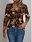 Damen T Shirt Blumen Grafik Vintage Stilvoll Klassisch Langarm V Ausschnitt Normale Oberteile Täglich Druck Braun Frühling Herbst