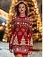 Weihnachten Damen Minikleid Pulloverkleid Urlaub Party Lässig Party Täglich Normale Passform Weihnachtsbaum Langarm Rundhalsausschnitt Rote Herbst Winter